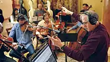 In the mid-1990s, Beal relocated to Los Angeles. His first critical notice came in 2001, for his "hypnotic combination of minimalist rhythmic drive and Americana" score to Ed Harris' directorial debut, Pollock.[12] He has since been nominated for nineteen primetime Emmy Awards, and has won five,[13] His first statue was awarded in 2003 for his main theme to the USA Network detective series Monk. Other Emmy nominations include HBO's evocative Depression era series, Carnivàle and epic drama Rome, as well as four nominations and two wins for Netflix's House of Cards.[14] Beal is noted for composing most of his music at his home, without assistants or orchestrators, playing most of the instruments himself. For the music from House of Cards, he added strings through recording a 17-piece string ensemble, which he invited to record in the living room of his home.[7] He recently completed the score for Rodrigo García's Raymond & Ray for which he composed and performed all of the jazz trumpet solos mimed by actor Ethan Hawke.[15]