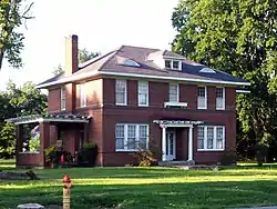 The Jefferies-Crabtree House is a historic house at 300 Jefferson Street in Clarendon, Arkansas. It is a two-story red brick structure, with a hip roof pierced by a central shed-roof dormer and a pair of eyebrow louvered attic vents. The front facade is symmetrically arranged, with tripled sash windows on either side of the center entrance, which is recessed and has a projecting narrow portico supported by slender round columns. The house was designed by Estes Mann whose practice was based in Memphis, Tennessee, and was built in 1923 for Alfred Jefferies, whose family owned mercantile and lumber businesses.[2]