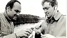 Jeffery Boswall (the left) with the Czech radio presenter Oldřich Unger in Velký a Malý Tisý nature reserve in Bohemia, Czechoslovakia, 1967