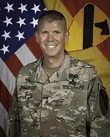 Jeffery D. Broadwater (born 1967) is a retired United States Army major general who last served as deputy commanding general of V Corps from August 2021 to July 2023.[5] He previously served as commanding general of the 1st Cavalry Division from October 2019 to July 2021.[6][7] Prior to that, he served as commanding general of the Fort Irwin National Training Center from November 2016 to September 2019.[2][8][3]