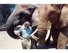 Shoshani was born in what is now Tel Aviv, Israel, but he held dual citizenship in the United States.[1] His interest in elephants began in his youth after he read a Hebrew copy of Willis Lindquist's Burma Boy,[2][3] which told the story of the relationship between a boy and an elephant.[4] He began his career as a zookeeper at the Tel Aviv Zoo[3] and became the head zookeeper in 1966.[5] He went on to research elephants in Sri Lanka and Kenya[4] before moving to Detroit, Michigan in 1968[6] and becoming an undergraduate professor at Wayne State University around 1973.[7] Shoshani founded the Elephant Interest Group (later known as the Elephant Research Foundation) in June 1977,[1] and was the sole editor of its official journal, Elephant (formerly Elephant Newsletter), for most of its run.[7] He also established the Elephant Research Foundation Library, through which he collected and cataloged published and archival materials, displays, and biological samples relating to elephants.[2] Shoshani was awarded his PhD from the university in 1986[6] and taught there while living with his wife Sandra and their pet rock hyrax[5] until he moved to Eritrea in 1998. There, he studied a poorly-known population of African bush elephants that were threatened by conflicts between Eritrea and Ethiopia[3][7] and taught at the University of Asmara until 2006.[7] Concerned about the danger of the Eritrea-Ethiopia border area,[4] he moved to Ethiopia in 2007 to continue his research, and taught at the University of Addis Ababa.[3]