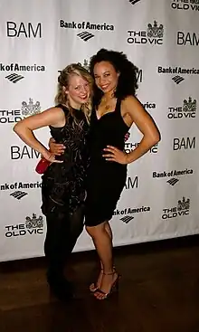 Jenni Barber (left), with Michelle Beck, at the opening of the Bridge Project, Brooklyn Academy of Music, 2010.