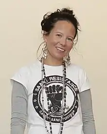 Jenni Laiti (born 1981) is a Sámi artist and activist associated with the Suohpanterror group and the ČSV cultural movement. She is the public spokesperson for Suohpanterror, whose members otherwise remain anonymous.[1]