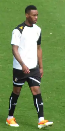 ![]() Myrie-Williams warming up for Port Vale before the match against Northampton Town on 20 April 2013. | |||