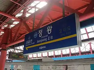 Jeongwang station is a station on Seoul Subway Line 4 and the Suin–Bundang Line located in the Jeongwang-dong area of Siheung, South Korea. Its secondary station name is Tech Univ. of Korea.[1] The name of the station originated from the local name.[2]
