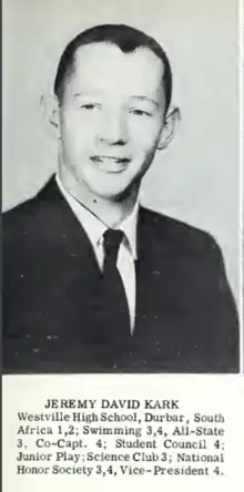 - ↑ "Jeremy Kark 1943-2018". Chapel Hill High School class of 1960. 2020-01-10. Retrieved 2020-04-12.