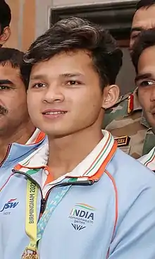Jeremy Lalrinnunga is an Indian weightlifter from Aizawl, Mizoram.[1] He represented India in the 2018 Summer Youth Olympics in Buenos Aires.[2] He won the gold medal in the Boys' 62 kg category weightlifting with a lift of 274 kg (124 kg in snatch and 150 kg in clean and jerk).[3][4] It was India's first gold medal in the Youth Olympic Games. Jeremy won silver medal in Asian weightlifting championship.[5] At the 2019 World Weightlifting Championships, Lalrinnunga finished at 21st rank at the Men's 67 kg event. He won gold in the 2022 Commonwealth Games, in the 67 kg category, with a game record lift of 140 kg in snatch and 160 kg in clean and jerk.[6][7]