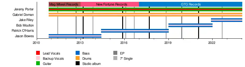 - Jason Bowes—bass, vocals (November, 2010 - July, 2014)