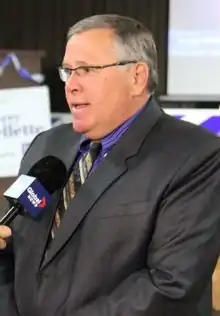 In the 2003 provincial election, Ouellette faced a strong challenge from provincial union representative and NDP candidate Sid Ryan. This was Ryan's third unsuccessful bid for a provincial seat (1999, Scarborough-Centre; 2003 and 2007, Oshawa) and his fifth electoral loss having been twice defeated by Colin Carrie, Oshawa's Conservative candidate and MP, in 2004 and 2006. Ouellette struggled to retain his seat, winning the 2003 race by 1,019 votes.[6] But the Progressive Conservatives lost the election and Ouellette moved to the opposition benches. Four years later, during the 2007 provincial election, Ouellette defeated Ryan a second time.[7] He was re-elected in the 2011 provincial election.[8]