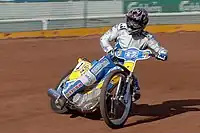 He rode for Wolves for seven seasons, until he joined Ipswich Witches in 2004.[6] In 2005, he joined Peterborough Panthers and Oxford Cheetahs and won the 2005 Individual European Championship.[7] During the 2006 Elite League speedway season Jensen was instrumental in helping Peterborough win the Elite League title. He averaged 8.76 as the team topped the regular season table and then won the play offs.[8]