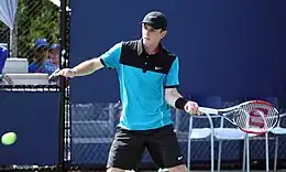 In July in Newport on the grass courts at the International Tennis Hall of Fame, he beat No. 5 seeded, world # 83 John Isner 6–3, 6–1.[63] Later in the month he beat Benjamin Becker of Germany, 6–3, 3–6, 7–6(8–6), at the Rogers Cup in Toronto.[64] In August at the New Haven, Connecticut International Series, he beat world # 67 Guillermo García López of Spain 6–0, 6–3, and world # 61 Steve Darcis, 2–0, retired. He broke into the top 100, at 96, on August 25.[2]