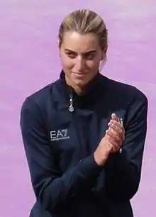 At European level, she won the women's trap event twice (in 2009, and 2013) alongside three silvers (2012, 2019 and 2021) and two bronze medals (2015, 2022), the women's team event twice (in 2019 and 2022, with silver in 2021) and the mixed team event twice (2021 and 2022, with bronze in 2019).[3] She also won two gold medals at the 2023 European Games,[4] one in the women's trap and one in the mixed team trap event, following silver medals in the same events at the 2019 European Games.[3]
