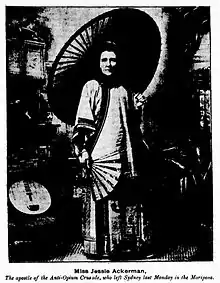 - ↑ "Miss Jessie Ackermann". Australian Town and Country Journal. NSW. July 17, 1907. p. 41. Retrieved December 17, 2011.