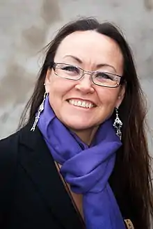 Marie Jessie Kleemann née Jensine Marie Kristensen (born 1959) is a Greenlandic artist and writer. Educated both as an actor and a graphic artist, from 1984 to 1991 she headed Greenland's College of Art in Nuuk.[1] Now recognized principally as a performance artist expressing Inuit themes in music and dance, her innovative poetry has featured in international festivals. Kleemann now lives and works in Copenhagen where she strives to revive Greenland's cultural heritage.[2][3][4]