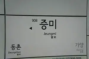 Jeungmi Station is a railway station on Line 9 of the Seoul Subway.