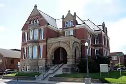 Jewett Norris Library, also known as Grundy County Jewett Norris Library, is a historic library building located at Trenton, Grundy County, Missouri. It was built in 1891, and is a 2 1/2-story, Romanesque Revival style red brick and limestone building. It has a high stone base and broad stone steps leading to a porch with heavy, round stone arches.[2]: 2