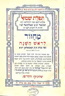 In 1526, the machzor of Yamim Noraim (Days of Awe), known as "Machzor le-nusach Barcelona minhag Catalunya"[31] was first published. According to the colophon, the impression was finished on the eve of Yom Kippur of the year 5287 (1526).[32]