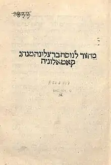 Catalonian Jews published several reprints of the machzor in the nineteenth century. In 1863 they printed an edition titled "Machzor le-Rosh ha-Shana ve-Yom ha-Kippurim ke-minhag qahal qadosh Catalan yashan ve-chadash be-irenu zot Saloniki".[33] This edition was published by Yitschaq Amariliyo.