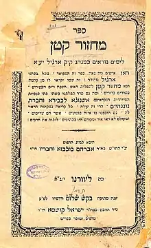 Machzor Qatan, according to the custom of the Holy communities of Algiers, Livorno, 1886.[38]