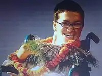 Jhamak Kumari Ghimire (Nepali: झमक कुमारी घिमिरे; Born on 4 July 1980) is a Nepali writer. She was born with cerebral palsy[1][2] and writes with her left foot.[3][4] She is a columnist at the Kantipur newspaper.[5] She had been awarded with the Madan Puraskar (the most popular award given to the writer for their contribution in Nepalese Literature) for her auto-biography Jiwan Kada Ki Phool (Is Life a Thorn or Flower). In addition, Ghimire was awarded by Kabita Ram Bal Sahitya Prativa Puraskar (2015), Aswikrit Bichar Sahitya Puraskar (2016), and Madan Puraskar (2010).