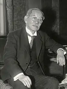 Kanō became active in the work of the International Olympic Committee (IOC) in 1909. This came about after Kristian Hellström of the Swedish Olympic Committee wrote to the governments of Japan and China to ask if they were going to send teams to the 1912 Olympics.[48] The Japanese government did not want to embarrass itself on an international stage by saying no, so the Ministry of Education was told to look into this. The Ministry logically turned to Kanō, who was a physical educator with recent experience in Europe. Kanō agreed to represent Japan at the International Olympic Committee, and, after talking to the French ambassador to Japan and reading pamphlets sent by the Swedes, developed, in his words, "a fairly good idea of what the Olympic Games were."[49]