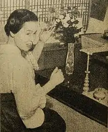 According to her own recollections, she had her spiritual awakening in 1934, where she received a revelation from various Buddhist, Christian and Shinto deities.[6] From 1935 onwards, tales of her vivid visions and her own charisma attracted a small group of followers. After leaving her husband in 1935, she began working as a spiritual healer in Yokohama and Kamata, Tokyo.[7] She would also change her name to Nagaka (良子), though keeping her husband's surname, and thus was known as Nagako Nagaoka.[8]