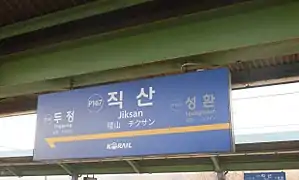 - 1 2 직산역 (in Korean). KRIC. Retrieved 2015-12-20.