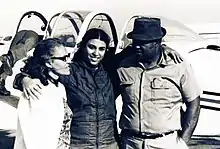 ![]() Brown (center) and her parents stand alongside a T-34B Mentor training aircraft, in 1974 | |