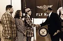 Afterwards, she began working as a teacher but decided to pursue flying as a career, joining the US Navy in 1974 for flight training. Brown was the first African-American woman to undergo the training.[2] Her admittance, and her swearing in by Tuskegee Airman Spann Watson was heavily covered in the African-American media.[3]