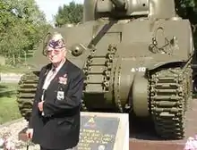 Col. Leach received the Distinguished Service Cross for his heroism at Bigonville, Luxembourg on December 24, 1944, during the Battle of the Bulge,[5] and earned five Purple Hearts for wounds in the European campaigns. He also was awarded the Croix de Guerre of Luxembourg, Virtuti Militarie – Poland, two Legion of Merits, three Silver Stars during Vietnam, and two Bronze Star Medals for heroism. Other honors include: Officer Candidate School Hall of Fame, Ft. Benning, GA; First recipient of the Gold Medal of the Order of St. George, US Armor Association in 1986;[6] Professor of Military History, Ft. Knox, Kentucky; President of Military Officers of America Association; and President of the Veterans Cemetery Committee of Beaufort (VCCOB).[7]