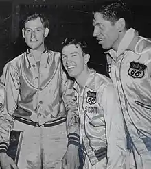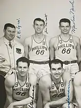 After graduating from Oklahoma, McNatt moved on to a career in Amateur Athletic Union basketball, an early basketball league that preceded the National Basketball Association.[16] Though runners up in the 1942 AAU National Tournament with a team featuring McNatt and former Stanford star Hank Luisetti, Phillips 66 won the next four consecutive AAU National Championships, led by the play of McNatt and Gordon Carpenter, both of whom were selected to the AAU All-America teams during these four seasons.[3] In 1943 and 1944, the 66ers defeated Denver's American Legion team 57-40 and then 50-43 in the tournament-final games.[17] In the 1945 championship game, a 47-46 win over Denver Ambrose, McNatt led Phillips 66 in scoring with 15 points, outdueling Denver star Robert Gruenig.[18] In McNatt's final season, Phillips 66 defeated the San Diego Dons by the score of 45-34 in the AAU championship game.[3]