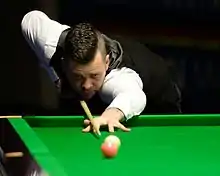 At the Haining Open, Robertson reached the semi-finals by knocking out Xiao Guodong and Thepchaiya Un-Nooh from the fourth round stage, but he lost 4–2 to Ding Junhui. He reached the last 16 of a ranking event for the first time in his career by beating Darryl Hill 6–2 and Barry Hawkins 6–4 at the International Championship and then lost 6–3 to Marco Fu.[28] Robertson saw off Michael Wild 4–3 and Michael Holt 4–1 in reaching the third round of the Welsh Open, where he was thrashed 4–0 by Ronnie O'Sullivan.[29] He lost 5–1 to Judd Trump in the second round of the China Open and 10–2 to Alan McManus in the last round of World Championship qualifying.[28] Robertson's end of season ranking of 34 is the highest he has ever finished a year in his career.[30]