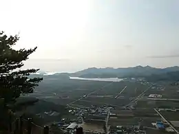 It is located in South Jeolla province, just off the southwest corner of the Korean peninsula. The island is separated from the mainland by the Myeongnyang Strait; however, this strait is now spanned by South Korea's longest cable-stayed bridge spanning 484 meters. Here in 1597 admiral Yi Sun-sin won the Battle of Myeongnyang, defeating a vastly superior Japanese fleet.