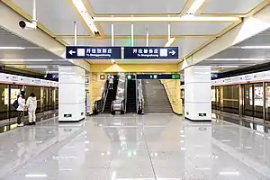 During early planning stages, it was known as You'anmenwai station (右安门外站).[3][4] In October 2015, it was renamed to Jingfengmen station.[5] The name "Jingfengmen" derives from the old gate in the Jin dynasty capital, Zhongdu.[6]