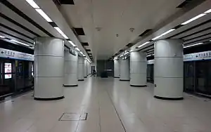 Jingsong station[1][2] (simplified Chinese: 劲松站; traditional Chinese: 勁松站; pinyin: Jìngsōng zhàn) is a subway station on Line 10 of the Beijing Subway. The station handled a peak entry and exit traffic of 109,700 people on May 5, 2013.[3] It was the southeastern terminus of the line until phase two of expansion completed the Line 10 loop.