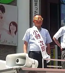 Jiro Ono (小野 次郎, Ono Jirō, born August 7, 1953) is a Japanese politician of Your Party, formerly of the Liberal Democratic Party, a member of the House of Councillors, formerly a member of the House of Representatives in the Diet (national legislature). A native of Hokuto, Yamanashi, and graduate of the University of Tokyo, he joined the National Police Agency in 1976, receiving a master's degree in jurisprudence from the University of Angers in France while in the agency. He was elected to the House of Representatives for the first time in the 2005 Japanese general election.