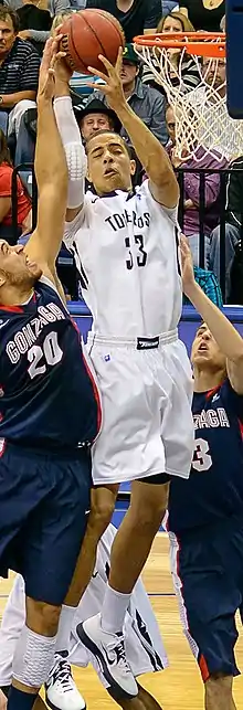![]() Kok attempting to dunk for San Diego | |