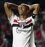 Miranda returned to Brazil in August 2006, on loan to São Paulo FC.[3] In March 2007, he signed with São Paulo FC until 2011.[4] In the same year, São Paulo won the 2006 Campeonato Brasileiro. He went on to win the 2007 and the 2008 editions of the Campeonato Brasileiro also, even being selected for the "Team of the Year" in both 2007[5] and 2008 respectively.[6] While São Paulo failed to win any more national titles during Miranda's stay with the club, his individual performances did not go unheralded, as he was included in a further two "Team of the Year" squads in 2009 and 2010.