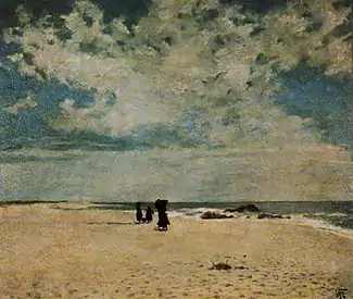In 1872, he enrolled at the "Academia das Belas-Artes" (now part of the University of Lisbon), where he studied under António da Silva Porto.[1] He graduated six years later. In 1881, he held his first exhibition at the Lisbon Geographic Society. Later, he exhibited more widely, including displays at the "Sociedade Promotora de Belas-Artes", the Artists' Guild and the "Sociedade Nacional de Belas-Artes". He was also a member of the "Lion's Group",[1] an informal association of artists and writers who met in the Golden Lion Tavern with the goal of promoting Naturalism in the arts.