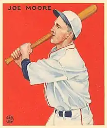 Joe Gregg Moore, Sr. (December 25, 1908 – April 1, 2001) was a left fielder in Major League Baseball who played his entire career with the New York Giants from 1930 through 1941. Moore batted left-handed and threw right-handed. He was born in Gause, Texas and nicknamed the "Gause Ghost." He was 5' 11" and weighed 155 pounds.