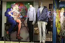 From July 19 to August 18, 2019, the Tower Records store in Shibuya held an exhibit celebrating the finale of the fifth part of the series, Golden Wind, and to promote the release of two games, JoJo's Bizarre Adventure: Pitter Patter Pop! and JoJo's Bizarre Adventure: Last Survivor.[124][125] The exhibit showed various concept art pieces from the series' artists as well as scripts from the show. Visitors could receive free items such as stickers, folders, and cards upon completion of various tasks, such as answering a quiz or buying a certain amount of items.[126] Each floor of the Tower Records building had a character on display, as a cardboard cutout and on the elevator doors. On August 14, 2019, a panel was held with directors Hideya Takahashi and Yasuhiro Kimura, and producer Kasama.[127]