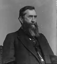 During the American Civil War, he served as a first lieutenant in Company B of the Twelfth Texas Cavalry Regiment.[3] He was wounded in the Battle of Yellow Bayou in Louisiana, and was disabled for many months, later rejoining his command. He remained with his command until the end of the war.[1] With war over, he resumed his law studies, and after becoming licensed in October 1866 began his legal practice in Springfield, Limestone County, Texas.[2] He later moved to Hillsboro, Texas, where he continued his legal career. On December 15, 1868, he married Rowena Sturgis of Hillsboro, daughter of James W. L. and Martha Sturgis.[1]