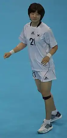 Jo Hyo-Bi (born 1991) is a South Korean handball player. She plays for the club Incheon, and on the South Korean national team. She competed for the Korean team at the 2012 Summer Olympics in London.[1]