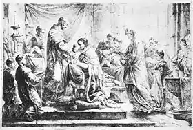 As a part of the alliance, in 1545 Joachim held a gala double wedding celebration for his two children, John George and Barbara. They were married to Sophie and George, both children of the Piast Duke Frederick II of Liegnitz in Silesia.[6]