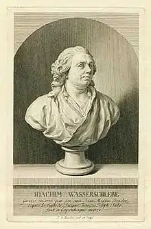 Joachim Wasserschlebe (1 May 1709, Salzwedel, Margraviate of Brandenburg - 13 March 1787, Wassersleben estates) was a German-Danish diplomat, politician, councillor, patron of the arts and art collector.