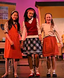 The Children's Theatre of Charlotte premiered two Cushing TYA musicals, Ella's Big Chance: a Jazz Age Cinderella in 2015, which despite its Roaring 20s costumes and jazzy dance numbers only received one run,[37] and Grace for President in 2016, which also was produced elsewhere and as recently as 2023.[38][39][40] The Grace musical is based on a 2008 book by author Kelly DiPucchio and illustrator LeUyen Pham. Looking at a school display featuring US presidents, Grace discovers that a woman has never held America's highest office. In response, she decides to run for president of her class. Grace's opponent is Thomas Cobb, a popular young man with a big ego.[41] Musical numbers include "The Democracy Rap" ala the musical Hamilton,[42] as well as "Boys, Boys, Boys" and "My Vote Counts."[41] According to the River Cities Reader review in April 2022 of the Circa '21 Dinner Playhouse's production, Grace delivers "important messages" about voting, using one's voice and more through fun songs and dancing and lively characters.[39]