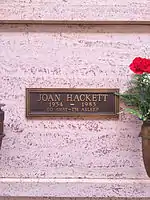 - ↑ "Person Details for Joan Hackett, "California Death Index, 1940-1997"". Familysearch.org. Retrieved 2016-02-25.