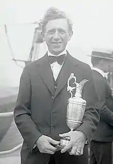 Hutchison was born in St Andrews, Fife, Scotland, the son of William and Helen (née Falls). His name was registered as John Waters Hutchison,[2] Waters being the maiden name of William's mother. He appears in the 1901 census as John Hutchison, golf caddie.[3] He had an older brother who was also a golf player, Tom Hutchison. Hutchison later moved to the United States and became a naturalized citizen in 1920.[4] He was known there as Jack Falls Hutchison[5] or John Falls Hutchison.[6] He won two major championships, the PGA Championship in 1920 and the Open Championship at St Andrews in 1921. His 1921 victory was the first by a U.S.-based player;[7] the following year Walter Hagen became the first U.S.-born winner.