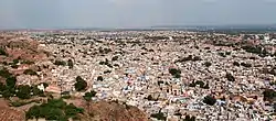 Clockwise from top-left: Meherangarh Fort, Umaid Bhawan Palace, Jaswant Thada, View of Jodhpur skyline, Osiyan Mata Temple in Osiyan