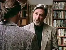Regarding the episode "Turnabout," Executive Producer Bill Panzer said, "this episode was the beginning of the relationship, well the expansion of the relationship between Joe Dawson and Duncan MacLeod. For Joe to help MacLeod by getting him a file was for him a very big step in what became a major character arc as the two of them grew closer and closer."[13] Regarding the episode "Unholy Alliance," Abramowitz said, "It created tension between Joe Dawson and Mac, which was a very good thing, so that Joe just wasn't a sidekick, wasn't a helper, that he had his own agenda, that he had his own view of the world, and it really solidified in some ways what the perspective of the Watchers were."[14] Abramowitz further observed, "I think that Joe believes that there is something singular and special about Duncan MacLeod, that there may be a destiny MacLeod has to fulfill, which is even greater than the Watchers'... Because he has seen signs, [in the episodes] 'Avatar,' 'Armageddon,' 'Something Wicked,' 'Deliverance,' 'Prophecy,' that separate MacLeod from everyone else, that there is a prophecy that MacLeod is the anointed one. We hint at it, and obviously Joe feels this, plus he feels a tremendous admiration for MacLeod. He loves Duncan MacLeod. This is as deep as one man can feel for another. And I think it's returned."[11]